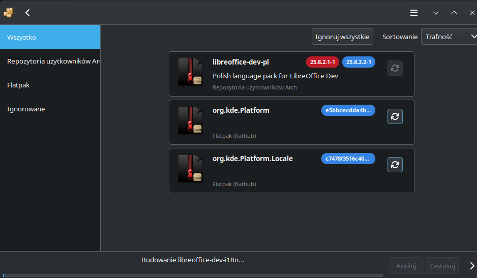 Sugerowałbym jednak zastąpić ten pakiet - który nie pochodzi z oficjalnych repozytoriów Manjaro - normalnym pakietem LibreOffice, który będzie Ci się zawsze bezproblemowo i szybko aktualizował.